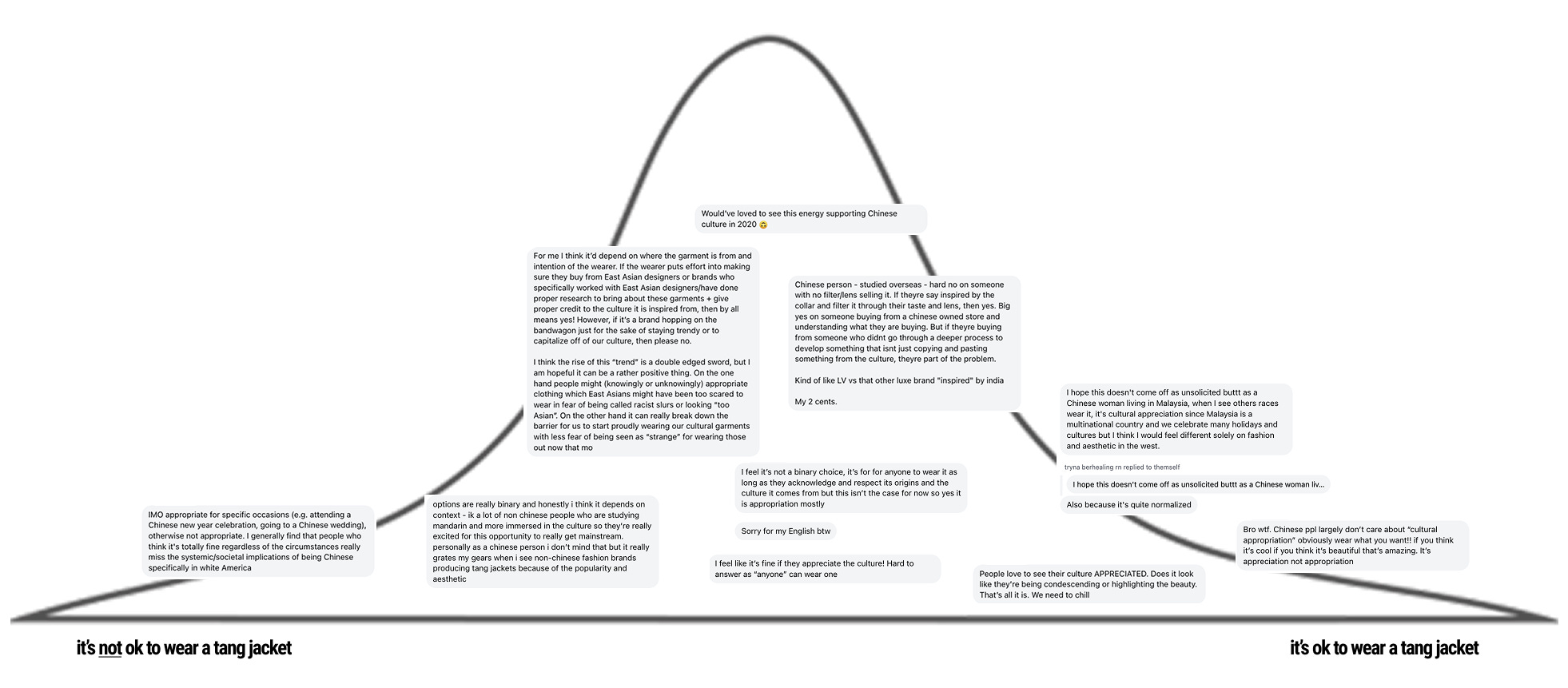 So! Instead of sheepishly asking your Chinese friends if it’s ok to wear a tang jacket — I have collected the full spectrum of opinions from my DMs (with permission of course to include them here).